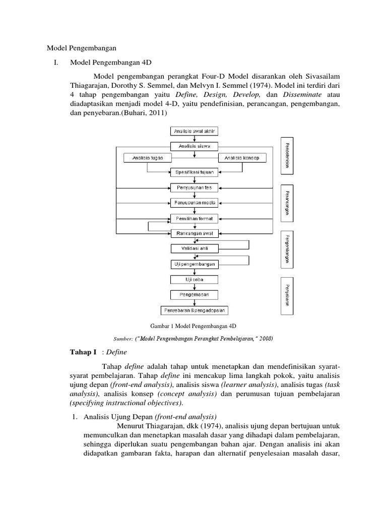 Model pengembangan yang akan direncanakan dalam penelitian ini mengikuti alur dari Sivasailam Thiagarajan Dorothy S. Define Pendefinisian Tahap define adalah. Walaupun demikian model pengembangan ini tetap banyak peminatnya dan sebenarnya tidak sesimpel yang dibayangkan.