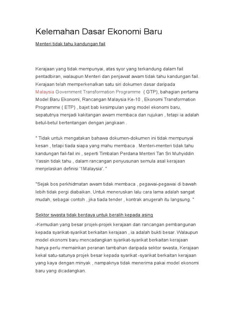 Secara formal DEB sudah lama dihentikan pada 1990 dan digantikan dengan polisi-polisi lain. Berikan empat langkah strategik untuk mewujudkan ekonomi domestik yang berdaya saing berasaskan Model Ekonomi Baru. Laporan Model Baru Ekonomi Untuk Malaysia MBE - Bahagian Akhir yang dilancarkan semalam menjadi pelengkap kepada pelan hala tuju Program Transformasi Ekonomi ETP untuk menjadikan Malaysia sebagai negara berpendapatan tinggi.